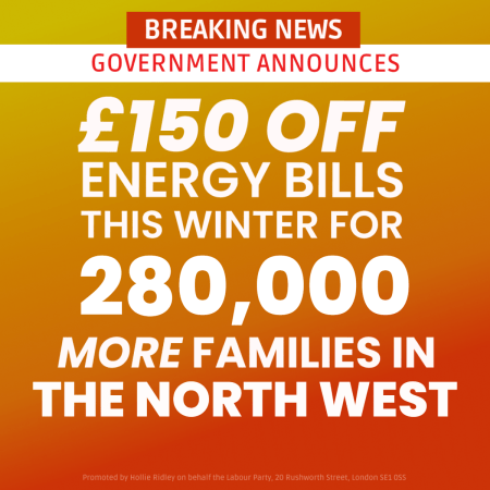 Labour Government delivers extra energy bill support for 280,000 more families in the North West