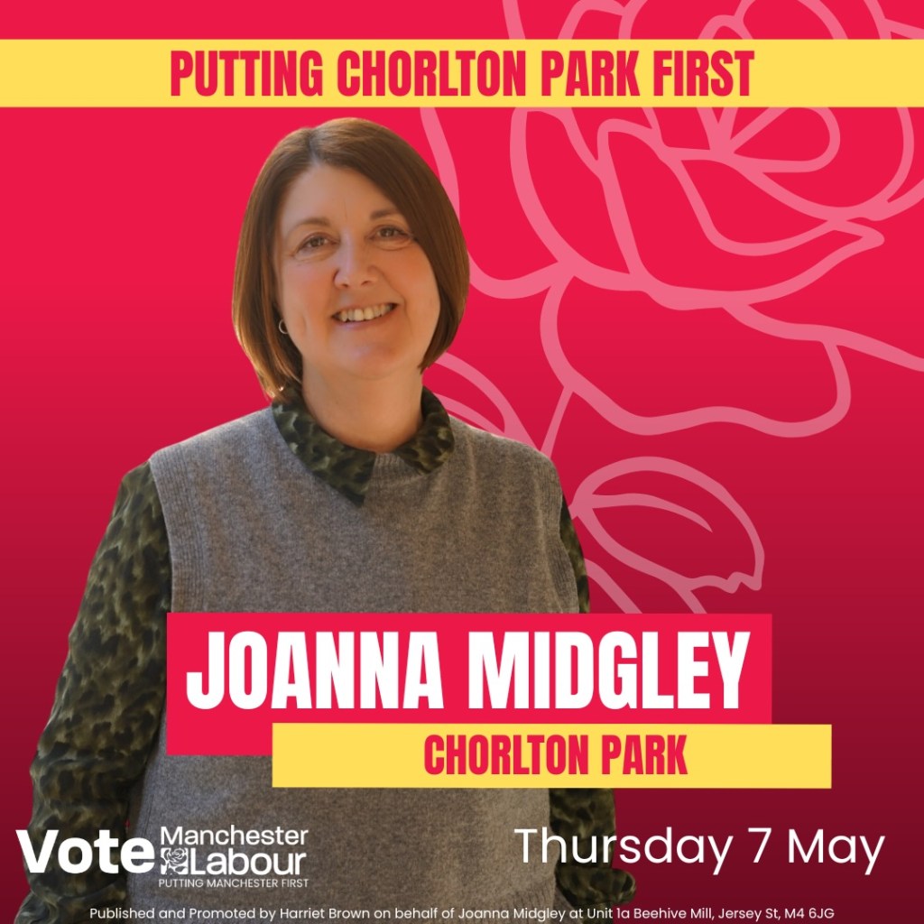 Cllr Joanna Midgley – Chorlton Park Ward Share this: Share on X (Opens in new window) X Share on Facebook (Opens in new window) Facebook Like Loading...